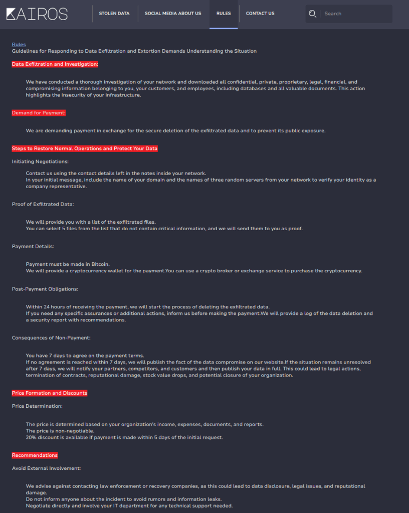 One of these groups that has popped up fairly recently, Kairos, has claimed attribution for several breaches in the past month alone, and it appears that they have only been active within the past year based off of the data that I’ve been able to gather. According to their DLS (Dedicated Leak Site), they have breached 14 companies so far; several of the businesses are health-care related but there appears to be no strict targeting based on a particular business sector.